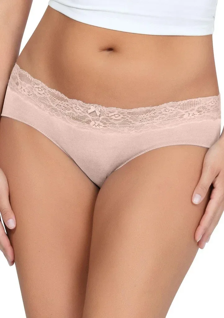 Dámské kalhotky šortkového střihu značky Parfait kombinované hladkou látkou s květinovou krajkou. Celý obvod pasu tvoří elastická přizpůsobivá krajka. Do vnitřního dílu je zapracován bavlněný klínek pro komfortní nošení.
