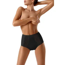 Bavlněné kalhotky s vysokým pasem a krajkovými akcenty na obou stranách předního dílu. Elegantní, ženské a velmi pohodlné. 92 % bavlna, 8 % elastan.