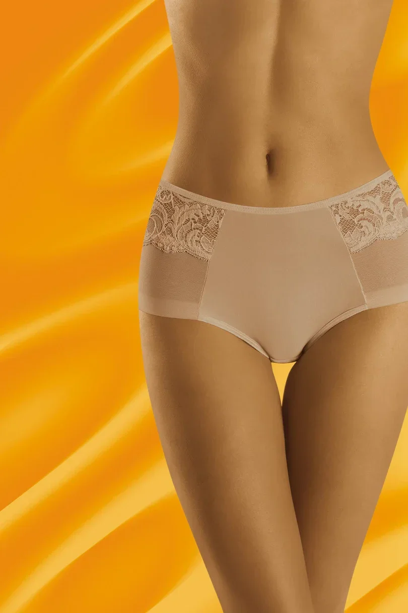 Dámské kalhotky zdobené krajkou. Zadní strana typu "clean cut" v bezešvém provedení - není vidět pod oblečením.