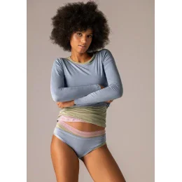 Dámské kalhotky od italské značky SIELEI. Kalhotky klasického střihu s nízkým pasem jsou vyrobeny z modalu. Díky tomu jsou velmi měkké a příjemné na nošení. Materiál je pružný a prodyšný. V pase a nohavičkách jsou ploché elastické lemy. Uprostřed je všitý bavlněný klínek pro maximální komfort.
