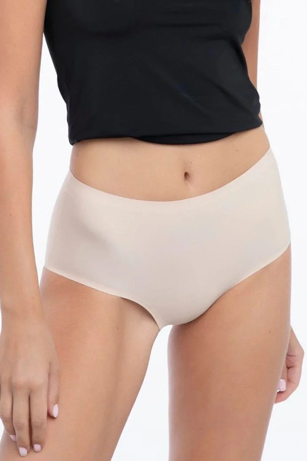 Dámské kalhotky Simple maxi beige JULIMEX - béžová barva - bezešvé - kalhotky mají vyšší pas - jednoduchý design