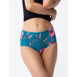 Dámské kalhotky simple maxi Wild Rose petrolejová se vzorem - Julimex