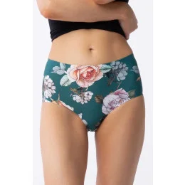 Dámské kalhotky Tea Rose Simple Brasil Maxi zelené se vzorem - Julimex
