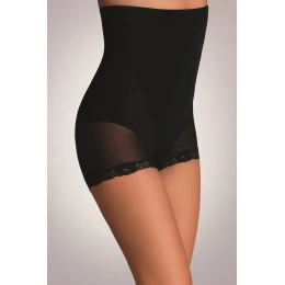 Šortky s vysokým pasem, korigující boky a bříško, se silikonem zabraňujícím prověšení, doplněné tylem a pěkným krajkovým lemem na stehnech. Tohle je prádlo, které vám vyhovuje a zároveň dobře vypadá. 85 % polyamid, 15 % elastan.