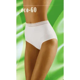 Kalhotky jsou vyrobené z velmi kvalitní ekologické bavlny s přídavkem lycry. Pas modelu zdobí ažurová krajka. Zadní díl je hladký, jednobarevný.