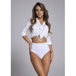 Kalhotky pěkně obepínají bříško a zvýrazňují linii pasu. Nohavičky jsou ve přední části modelu střižené laserem. Zadní díl kalhotek zdobí efektní ažurová krajka.