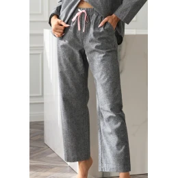 Damskie spodnie do spania od L&L to połączenie stylu i komfortu. Wykonane w 100% z wysokogatunkowej bawełny, są miękkie, przewiewne i przyjazne dla skóry. Modny, materiał dodaje im wyjątkowego charakteru, a elastyczny pas z troczkiem umożliwia idealne dopasowanie. Kieszenie na wysokości bioder zwiększają funkcjonalność i wygodę.