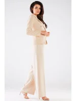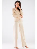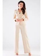 Kalhoty s vysokým sedem a širokými nohavicemi, bez kapes. Kalhoty se zipem a knoflíkem vpředu. Skvěle vypadají se sakem stejné barvy. Výrobek vyrobený v Polsku.