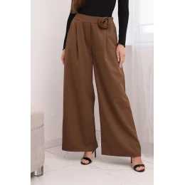 Dámské kalhoty elegantní se širokou nohavicí a ozdobným květem světle hnědé