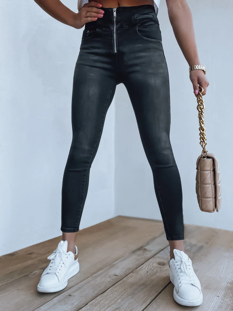 Černé dámské kalhoty s vysokým pasem a push up prošíváním. Jsou vyrobeny z kvalitní elastické látky a zakončeny předním zapínáním, díky čemuž jsou velmi originální. Ideální pro každodenní ženský styling.