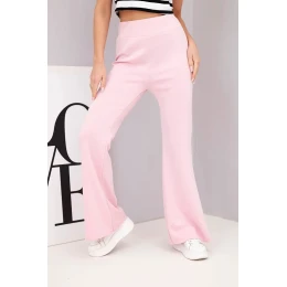 Dámské kalhoty máslíčko s rozšiřující nohavicí světle růžové