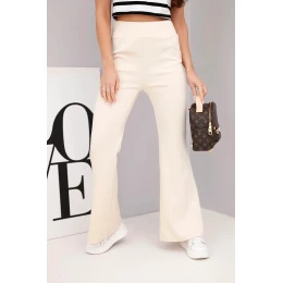 Dámské kalhoty máslo s rozšiřující se nohavicí béžové