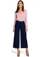 Volné jednobarevné cullottes vylepší každý outfit, a to jak ten méně, tak i ten elegantnější. Mohou úspěšně nahradit elegantní sukni nebo být náhradou za klasické džíny nošené každý den. Kalhoty se zipem a knoflíky.