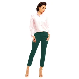 Zapínání na knoflík a zip s kapsami. Pohodlné a elegantní, 7/8 nohavice, vyšší pas. Hodí se pro každou příležitost: do práce, na zkoušky nebo na setkání s přáteli. Doporučujeme každé ženě, která si cení dokonalého vzhledu každý den. Jedinečný střih, elegantní a šik, dokonale šitý na míru, propracovaný v každém detailu, dokonalý doplněk každého stylingu.