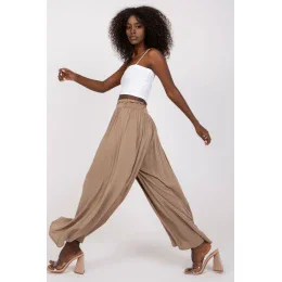 Viskózové kalhoty s vysokým pasem a elastickým pasem. Kalhoty se širokými nohavicemi, ozdobný pásek na zavázání.