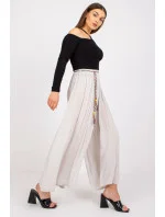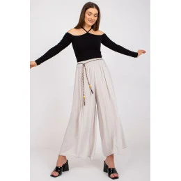 Materiálové kalhoty se širokými nohavicemi, v pase na gumu. Kalhoty s ozdobným páskem.