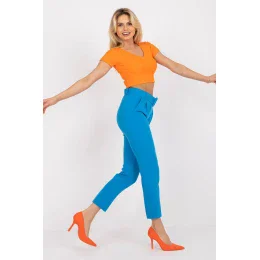 Dámské kalhoty s vysokým pasem, zipem a knoflíky. Kapsy na bocích. Pás je součástí dodávky.