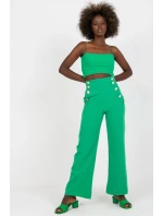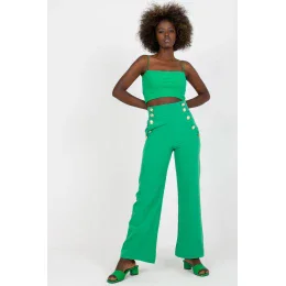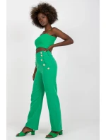 Dámské kalhoty s vysokým pasem a ozdobnými knoflíky na přední straně. Kalhoty s krytým zipem. Kalhoty s nakládanými kapsami.
