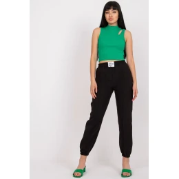 Dámské látkové kalhoty s elastickým pasem. Kalhoty s vysokým pasem a bočními šikmými kapsami.