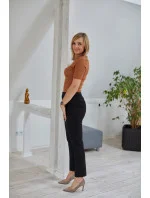 Tyto výjimečné kalhoty splní očekávání každé ženy. Jsou vyrobeny z velmi elegantní tkaniny s přídavkem elastanu. Kalhoty jsou nařasené pod úhlem, na přední straně mají ozdobné knoflíky, na zadní straně jsou vykrojené kapsy a v pase je pružný pásek. Kalhoty s vysokým pasem.