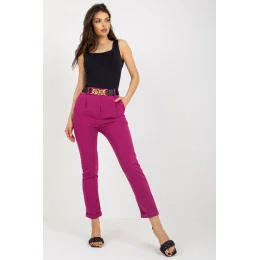 Kalhoty s vysokým sedem, elastickým pasem a ozdobným páskem. Kapsy na bocích. Mají hladký vzor, takže je lze nosit na večer, na rande nebo do práce.