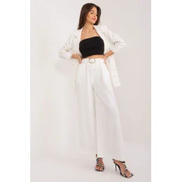 Dámské palazzo kalhoty jsou esencí elegance a pohodlí, ideální pro různé příležitosti, od každodenních schůzek až po formální výlety nebo události. Jsou vyrobeny z hladké polyesterové tkaniny, která zajišťuje vysoký komfort nošení a odolnost. Díky vysokému pasu kalhoty dokonale sedí na postavě, zdůrazňují její proporce a dodávají jí ženskou eleganci. Široké nohavice jim dodávají charakter a zdůrazňují jemnost a lehkost střihu. Praktické postranní kapsy poskytují pohodlné uložení drobných předmětů, díky čemuž jsou tyto kalhoty stylové i funkční. Kromě toho jsou kalhoty vybaveny elastickým pasem a páskem se sponou, který působí lehce a dodává jim šmrnc. Díky své univerzálnosti budou tyto palazzo kalhoty ideální pro nejrůznější situace, od každodenních povinností přes dny v práci až po večerní schůzky či akce. Jejich elegantní styl a výjimečné pohodlí z nich udělají oblíbenou součást šatníku každé ženy.