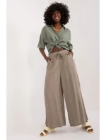 Široké nohavice jsou ideální volbou pro každodenní stylizace, které kombinují pohodlí s elegancí. Vyrobené z viskózy, která poskytuje měkkost a prodyšnost, se skvěle hodí jak na teplé dny, tak i na chladnější večery. Široké nohavice dodávají volný, nedbalý vzhled, který skvěle zapadá do casual stylu. Další výhodou jsou praktické kapsy pro snadnější použití. Vysoký pas zdůrazňuje pas a opticky prodlužuje postavu, což je velmi výhodné pro každý typ postavy. Šňůrky na uzavírání umožňují ideální přizpůsobení pasu a bez zavírání zaručuje pohodlné nošení. Jednoduchý a jednotný design dělá tyto kalhoty všestranným kouskem oblečení, který se dá snadno kombinovat s různými topy a doplňky. Je to univerzální nabídka pro ženy, které ocení módu a pohodlí každý den.