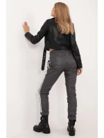 Dámské kalhoty z ekokůže jsou skvělou volbou pro milovnice casual stylu, ideální na každý den i do práce. Vyrobené z vysoce kvalitní směsi viskózy, polyesteru a elastanu poskytují pohodlí a elasticitu, a jejich hladký vzor jim dodává moderní charakter. Vysoký pas skvěle zdůrazňuje pas, a zúžené nohavice opticky prodlužují postavu. Kalhoty mají praktické boční kapsy, které jsou ideální pro uložení drobností. Navíc, šňůrka v pase umožňuje individuální nastavení, a stylové pruhy po stranách nohavic dodávají celku sportovní, ale zároveň elegantní vzhled. Jedná se o univerzální kus oblečení, který lze kombinovat s různými topy a doplňky, vytvářející jedinečné stylizace.