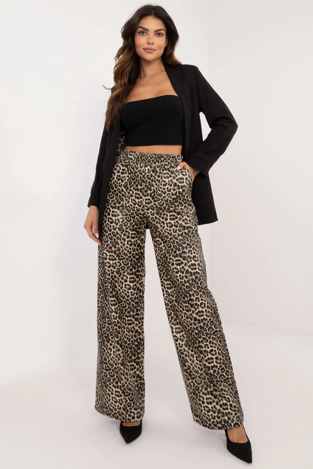 Kalhoty z ekokože v casualovém a elegantním stylu, ideální na každý den i do práce. Vyrobené z kombinace polyesteru a elastanu, poskytují pohodlí nošení a pružnost, a jejich vysoký pas zdůrazňuje pas. Dominantní zvířecí motiv dodává originalitu a módní akcent. Kalhoty mají rovné nohavice, co je činí univerzální a snadno kombinovatelné s různými stylizacemi. Bez zapínání a gumový pas zajišťují pohodlí a snadné oblékání, a boční vložené kapsy přidávají funkcionalitu. Ideální volba pro ty, kteří si cení stylu a pohodlí!