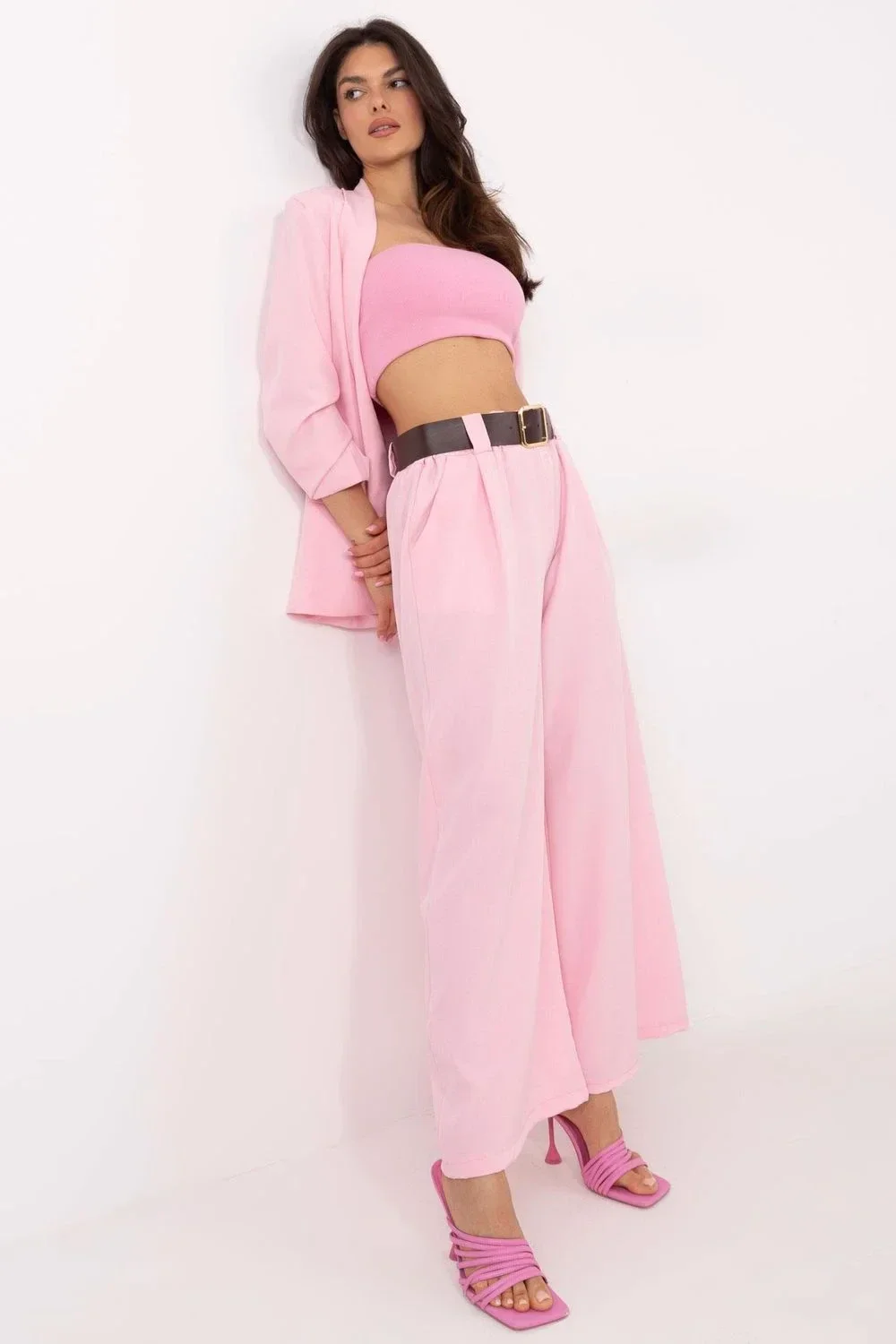 Dámské látkové kalhoty ve švédském střihu spojují eleganci a pohodlí, ideální na různé příležitosti, od každodenních outfitů přes pracovní oděv až po společenské události. Vyrobené z vysoce kvalitní směsi polyesteru a elastanu poskytují pohodlí nošení, odolnost a skvělé přizpůsobení. Kalhoty mají vysoký pas, který zdůrazňuje pas, a široké nohavice, které jim dodávají moderní a stylový vzhled. Bez zapínání zajistí minimalistický design, a přiložený zapínací pásek umožňuje ideální přizpůsobení postavě. Boční kapsy přidávají funkčnost a jsou praktickým řešením na drobnosti. Hladký vzor a elegantní styl dělají z kalhot skvělý doplněk k halenkám, saka nebo lehkým blůzám, vytvářejí klasické a elegantní outfit na každou příležitost.