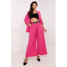 Dámské látkové kalhoty ve střihu tříčtvrtečníků jsou kombinací elegance a pohodlí, ideální na různé příležitosti, od každodenních stylizací, přes pracovní oděv až po společenské výlety. Vyrobené z vysoce kvalitní směsi polyesteru a elastanu zajistí pohodlí nošení, odolnost a dokonalé padnutí. Kalhoty mají vysoký pas, který zdůrazňuje pas, a široké nohavice, které jim dodávají moderní a stylový vzhled. Bez zapínání zajišťuje minimalistický design a přiložený zapínací pásek umožňuje ideální přizpůsobení postavě. Postranní kapsy přidávají funkčnost a jsou praktickým řešením na drobnosti. Hladký vzor a elegantní styl zajišťují, že kalhoty skvěle ladí s košilemi, saka nebo lehkými halenkami, vytvářejí klasické a elegantní sestavy na jakoukoli příležitost.