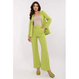 Dámské elegantní kalhoty jsou skvělou volbou na formální události, jako je práce nebo obchodní schůzky. Vyrobené z vysoce kvalitního polyesteru, hladké a lesklé, působí velmi elegantně. Jejich vysoký pas zdůrazňuje postavu a dodává jim moderní charakter. Rozšířené nohavice ke spodu dodávají kalhotám lehkost a jemnost, skvěle ladí s elegantním vzhledem. Zapínání na knoflík a zip zajišťuje pevné držení kalhot na bocích, zdůrazňující jejich přizpůsobivost. Kapsy jsou praktické a umožňují uložení drobných předmětů. K těmto kalhotám patří pásek, který nejen plní praktickou funkci, ale také dodává eleganci a zdůrazňuje pas. Tyto elegantní kalhoty jsou skvělým doplňkem ženského šatníku, zaručují stylový vzhled a sebejistotu během důležitých událostí nebo pracovních setkání.