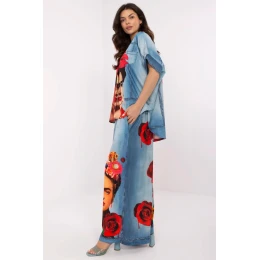 Stylové kalhoty palazzo, ideální na každý den, vyrobené z lehkého materiálu, který poskytuje pohodlí a volnost pohybu. Tyto volné kalhoty se vyznačují barevným potiskem, který jim dodává jedinečný charakter. Vyrobené z viskózy s přídavkem polyesteru, jsou prodyšné a příjemné na dotek. Mají vysoký pas, který zdůrazňuje pas a široké nohavice, které dodávají siluetě lehkost a eleganci. Šňůrky v pasu umožňují nastavení podle individuálních potřeb, poskytují dodatečné pohodlí. Ideální na každý den, přidávají styl každému volnému outfitu.