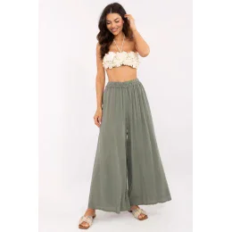Dámské látkové kalhoty typu švédovky, ideální na každodenní nošení v ležérním stylu. Vyrobené z lehké a prodyšné viskózy, poskytují pohodlí a volnost pohybu. Široké nohavice jim dodávají elegantní a zároveň volný charakter. Vysoký pas zdůrazňuje pas, elastický pásek v pase zaručuje pohodlné přizpůsobení. Hladký materiál dělá kalhoty univerzální a snadné na styling. Skvělá volba pro ženy, které ocení pohodlí a stylový vzhled.