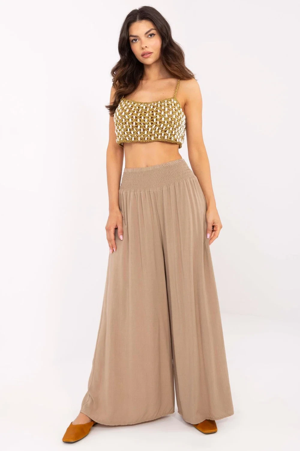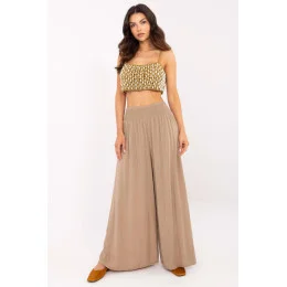 Dámské látkové kalhoty typu švédské, ideální na každodenní nošení v ležérním stylu. Vyrobené z lehké a prodyšné viskózy, poskytují pohodlí a volnost pohybu. Široké nohavice jim dodávají elegantní, ale zároveň volný charakter. Vysoký pas krásně zdůrazňuje pas, a ozdobné rimplování přidává jemný šarm a stylové dokončení. Hladký materiál dělá z kalhot univerzální kusy, které lze snadno kombinovat s různými kousky šatníku. Ideální volba pro ženy, které oceňují pohodlí a módní vzhled.
