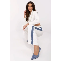 Dámské látkové kalhoty v casual stylu jsou kombinací pohodlí a módního designu. Vyrobené z elastického materiálu z polyesteru a elastanu poskytují pohodlí a skvělé přizpůsobení postavě. Jejich vysoký pas zdůrazňuje pas, a široké nohavice zaručují volnost pohybu a stylový vzhled. Hladký vzor je dělá univerzální a ideální na každý den, kontrastní pruhy po stranách dodávají moderní charakter. Kalhoty mají praktické boční kapsy, klasické zapínání na knoflík a zip. To je skvělá volba pro ženy, které ocení pohodlí, ale zároveň chtějí vypadat stylově v každé situaci.