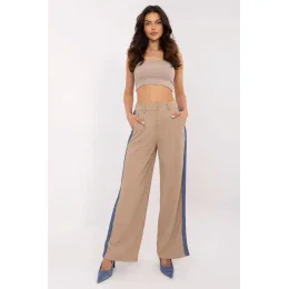 Dámské látkové kalhoty v casual stylu jsou kombinací pohodlí a módního designu. Vyrobené z elastického materiálu z polyesteru a elastanu poskytují pohodlí a skvěle sedí na postavě. Jejich vysoký pas zdůrazňuje pas, široké nohavice zaručují volnost pohybu a stylový vzhled. Hladký vzor je činí univerzálními a ideálními na každý den, kontrastní pruhy po bocích jim dodávají moderní charakter. Kalhoty mají praktické boční kapsy a klasické zapínání na knoflík a zip. Jsou skvělou volbou pro ženy, které ocení pohodlí, ale zároveň chtějí vypadat stylově v každé situaci.