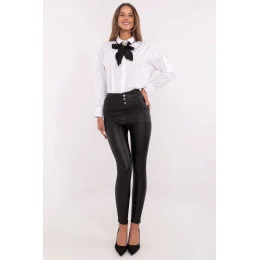 Dámské rourové kalhoty z ekokože jsou stylovým návrhem pro ženy, které ocení pohodlí a módní vzhled. Vyrobené z elastického materiálu, který kombinuje polyamid, elastan a polyester, skvěle padnou k postavě, zdůrazňují její přednosti. Hladký vzor a ležérní styl dělají tyto kalhoty skvělým doplňkem k každodenním outfitům. Vysoký pas zeštíhlí pas, a zužující nohavice dodávají elegantní, ženský charakter. Model nemá klasické zapínání, což zvyšuje pohodlí nošení, a otevřené kapsy dodávají funkčnost. Zateplení zase zajišťuje, že kalhoty perfektně poslouží v chladnějších dnech, a ozdobné knoflíky na přední straně jim dodávají výjimečný styl.