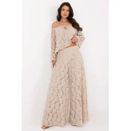 Elegantní, krajkové kalhoty palazzo jsou stylovým návrhem pro ženy, které ocení eleganci a pohodlí. Vyrobené z jemné ažurové krajky na podšívkové látky kombinují jemný šarm s pohodlím každodenního nošení. Materiál z bavlny a nylonu dělá kalhoty lehké, prodyšné a příjemné na dotek. Široké nohavice ve stylu palazzo se pěkně usazují při pohybu, dodávají postavě lehkost a moderní charakter. Bez zapínání zajišťuje pohodlné oblékání a hladké dokončení v pasu. Tento model se skvěle hodí na různé příležitosti, do práce, do každodenního života, ale i na večírky nebo elegantní výstupy. Stylová krajka a klasická délka vytvářejí wow efekt bez námahy, stačí přidat jednoduchý top nebo elegantní halenku.