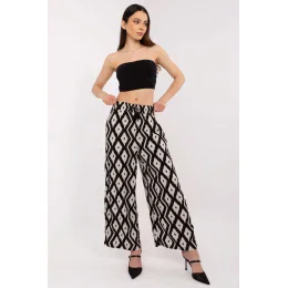 Lehké a pohodlné dámské kalhoty s casualovým charakterem jsou ideální volbou pro každodenní outfit. Vyrobené z prodyšné a šetrné vůči kůži viskózy, která patří do kategorie ekologického oblečení, spojují pohodlí nošení s péčí o životní prostředí. Vysoký pas a šněrování v pase zajistí skvělé padnutí a zdůrazní pas, zatímco široké nohavice dodají postavě lehkost. Ozdobný potisk přidává charakter a boční kapsy zvyšují funkčnost. Jedná se o skvělý návrh pro ženy, které ocení styl, pohodlí a uvědomělé výběry.