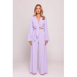 Elegantní a pohodlné kalhoty vyrobené z lehké látky s výraznou strukturou krepu a matným povrchem. Model s volným střihem a širokými, dlouhými nohavicemi poskytuje volnost pohybu a moderní vzhled, ideální jak na každodenní nošení, tak i pro elegantnější styly. Vysoký, elastický pas zajišťuje skvělé přizpůsobení postavě a je snadné je obléci bez zipu a knoflíků. Chybějící kapsy zdůrazňují jednoduchost a lehkost tvaru. Navrženo a vyrobeno v Polsku s ohledem na pohodlí a nadčasový styl.