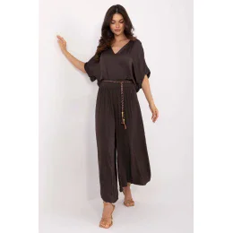 Dámské látkové kalhoty typu palazzo, ideální pro každodenní stylování. Vyrobené z lehké a prodyšné viskózy, poskytují pohodlí a volnost pohybu. Široké, vzdušné nohavice jim dodávají elegantní a uvolněný charakter, a vysoký pas zdůrazňuje postavu, zároveň poskytující pohodlí. Kalhoty mají pásek k uvázání, který umožňuje přizpůsobení v pase, a hladký materiál je dělá univerzální a snadno kombinovatelné s různými horními částmi šatníku. Skvělá volba pro každodenní, ale i více elegantní stylování.