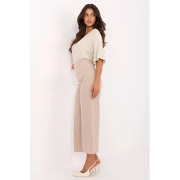 Elegantní kalhoty typu kuloty pro ženy jsou návrh, který spojuje styl a pohodlí. Vyrobené z vysoce kvalitního polyesteru s přídavkem elastanu, jsou hladké, lehké a pohodlné na nošení. Model s vysokým pasem krásně zdůrazňuje pas, a široké nohavice dávají siluetě lehkost a moderní charakter. Kalhoty se zapínají na skrytý zip umístěný na levé straně, což zaručuje estetické dokončení. Absence kapes zdůrazňuje elegantní, minimalistický styl. Ideální jak do práce, tak i na společenské události jsou nadčasové kuloty, které se hodí do mnoha outfitů.