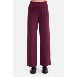 Kalhoty pro ženy vyrobené z žebrované pleteniny o gramáži 250 g, která je měkká, pružná a příjemná na nošení. Model bez kapes a podšívky, s praktickým elastickým páskem v pasu, který zajistí pohodlí a přizpůsobení se postavě. Volný střih, pletené kalhoty jsou přizpůsobené v pasu a bocích a dále se volně skládají, což zaručuje pohodlí a lehkost. Dlouhé, přímé nohavice mírně se rozšiřující ke dnu zjemňují postavu a dodávají celku eleganci. Střední výška pasu zajišťuje, že kalhoty dobře sedí a zdůrazňují pas, a plná délka po zem dodává moderní efekt prodloužení nohou. Navrženo a vyrobeno v Polsku z pleteniny vyrobené v Lodži, tato kombinace pohodlí, kvality a nadčasového stylu.
