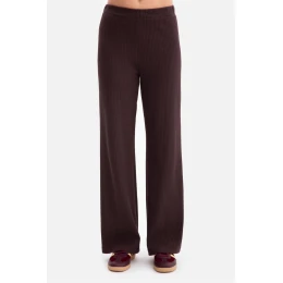 Kalhoty dámské vyrobené z pruhované pleteniny o gramáži 250 g, která je měkká, elastická a příjemná na nošení. Model bez kapes a podšívky, s praktickým elastickým pásem, poskytující pohodlí a přizpůsobení postavě. Volný střih, pletené kalhoty jsou přizpůsobeny v pasu a bocích a dále se volně skládají, zajistí pohodlí a lehkost. Dlouhé, přímé nohavice mírně rozšiřující se ke dnu zúžují postavu a dodávají celku eleganci. Střední výška pasu zajišťuje, že kalhoty dobře sedí a zdůrazňují pas, a plná délka až na zem jim dodává moderní, prodlužující nohy efekt. Navrženy a vyrobeny v Polsku z pleteniny vyrobené v Lodži, toto spojení pohodlí, kvality a nadčasového stylu.