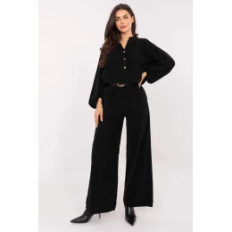 Elegantní štručkové kalhoty v ležérním stylu, ideální na každý den. Vyrobené z měkkého materiálu s vysokým obsahem polyesteru, poskytují pohodlí a pohodlí po celý den. Model má vysoký pas s elastickou gumou, která zaručuje ideální přizpůsobení postavě a pohodlí při pohybu. Široké nohavice typu wide leg dodávají kalhotám moderní, lehce retro charakter, a vsunuté boční kapsy jim dodávají praktičnost. Celkový vzhled doplňuje zapínací pásek, který zdůrazňuje pas a dokončuje stylový vzhled. Tyto látkové kalhoty jsou skvělou volbou pro ženy, které ocení volnost a elegantní minimalismus v každodenních stylizacích.