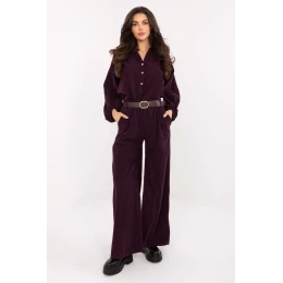 Stylové štručkové kalhoty v casual stylu, ideální na každý den. Vyrobené z měkkého materiálu s vysokým obsahem polyesteru, poskytují pohodlí a pohodlí po celý den. Model má vysoký pas s gumou, která zaručuje ideální přizpůsobení postavě a pohodlí při pohybu. Široké nohavice typu wide leg dávají kalhotám moderní, lehce retro charakter, a kapsy na bocích dodávají praktičnost. Celkový vzhled doplňuje zapínací pás, zdůrazňující pas a dokončující stylový vzhled. Tyto látkové kalhoty jsou skvělou volbou pro ženy, které ocení svobodu a elegantní minimalismus v každodenních outfitech.