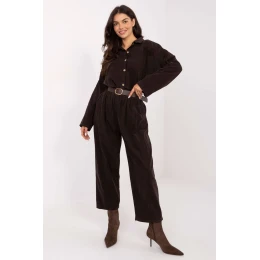 Pohodlné a stylové dámské kalhoty s volným střihem, ideální na každý den. Vyrobené z měkkého polyesteru, poskytují pohodlí při nošení a volnost pohybu. Model má vysoký pas s všitou gumou, díky čemuž skvěle padne a zdůrazňuje pas. Kalhoty mají boční kapsy a otevřené kapsy vzadu, což jim dodává praktičnost. Celý vzhled doplňuje pásek zapínající se v pasu, který představuje módní a funkční detail. Hladký materiál a široké nohavice jim dodávají lehkost a nonšalanci, skvěle se hodí k casual a každodenním outfitům, ať už s elegantní košilí nebo volným tričkem.