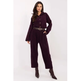 Pohodlné a stylové dámské kalhoty s volným střihem, ideální na každý den. Vyrobené z měkkého polyesteru, poskytují pohodlí a volnost pohybu. Model má vysoký pas s gumou pro dokonalé přizpůsobení postavě a zdůraznění pasu. Kalhoty mají boční kapsy a otevřené kapsy vzadu, což jim dodává praktičnost. Celkový dojem dotváří pásek zapínající se v pasu, který představuje módní a funkční doplněk. Hladký materiál a široké nohavice dodávají lehkost a neformálnost, skvěle se hodí k casualovým a každodenním stylizacím, ať už s elegantní košilí nebo volným tričkem.