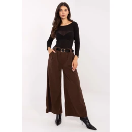 Elegantní látkové kalhoty s elegancí, ideální na každodenní nošení i do práce. Vyrobené z měkkého žíněného materiálu s různými texturami, poskytují výjimečný komfort nošení a stylový vzhled. Model má vysoký pas a široké nohavice, které se krásně přizpůsobují postavě, opticky ji zúžují. V pasu je vsazena elastická guma, která zaručuje pohodlné přizpůsobení, a zapínací pásek umožňuje další regulaci obvodu. Kalhoty nemají zapínání, co zvyšuje komfort užívání. Boční kapsy přidávají funkčnost a eleganci. To je skvělá volba pro ženy, které ocení spojení elegance, pohodlí a moderního stylu.